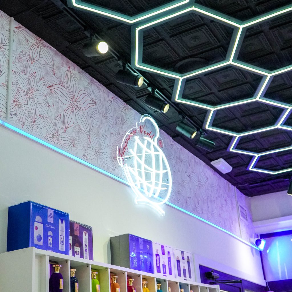 El resultado es un espacio llamativo, bien iluminado y funcional, donde la iluminación no solo cumple una función técnica, sino que se convierte en un elemento clave del diseño y la experiencia del cliente.
